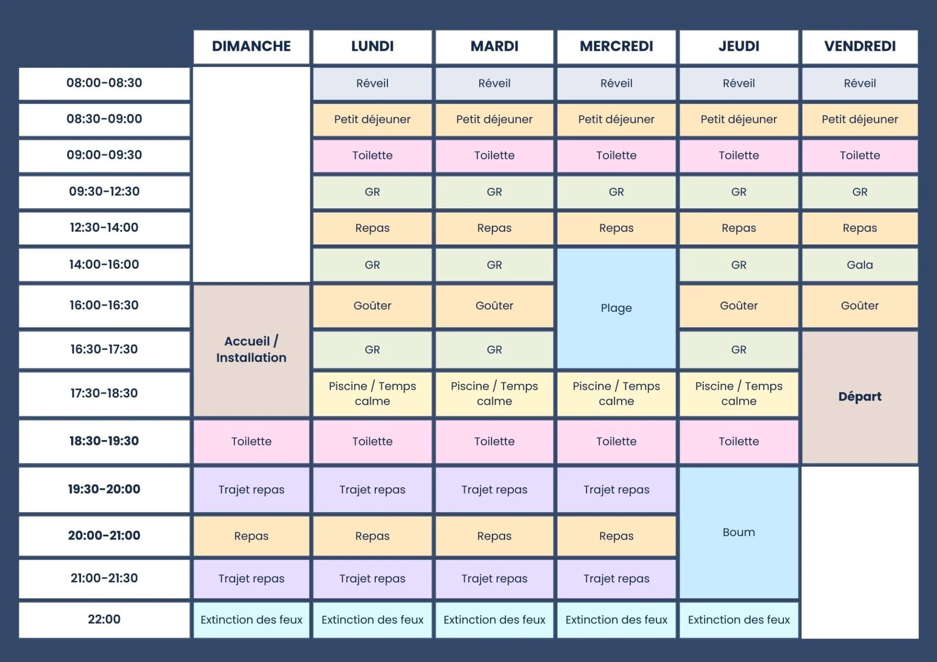À L'ARRIVÉE : L'accueil de vos enfants se fera le dimanche 5 juillet 2026 entre 16h00 et 18h00 au camping "Le Lagon d'Argelès-sur-Mer" à Argelès sur mer. Une arrivée en dehors de ces horaires est possible sur simple demande auprès des organisateurs.